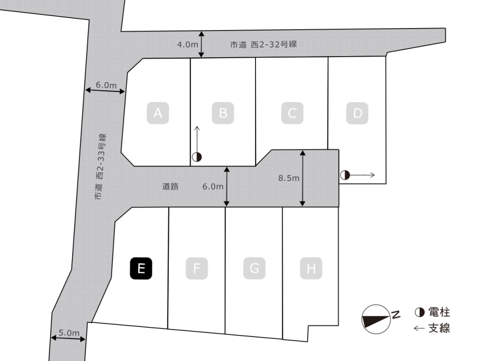 | 接道状況 | 市道 南側6m、分譲地内 西側6mに接道 |