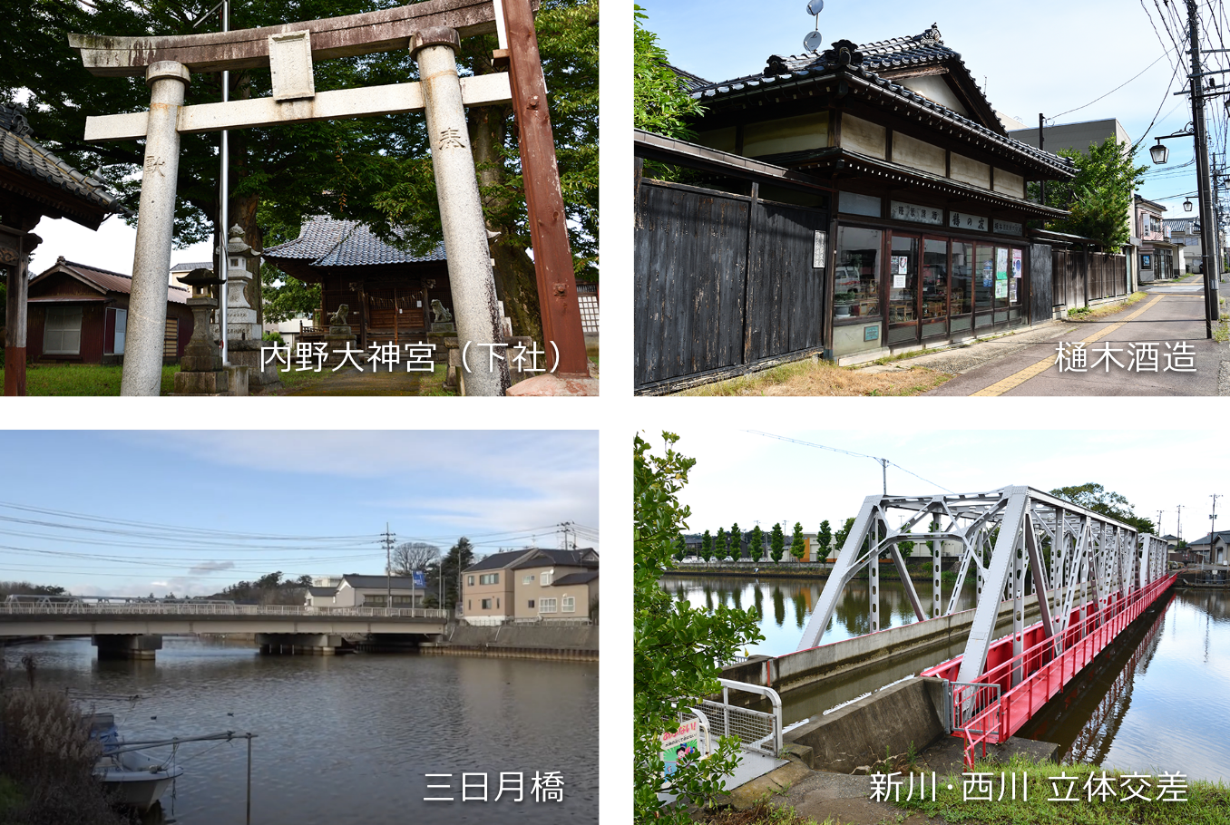 内野町を古くから見守る「内野大神宮(下社)」をそばに。歴史の趣を感じられる街の風景として、「酒蔵(樋木酒造・塩川酒造)」、「三日月橋」、「新川・西川 立体交差」が徒歩圏。