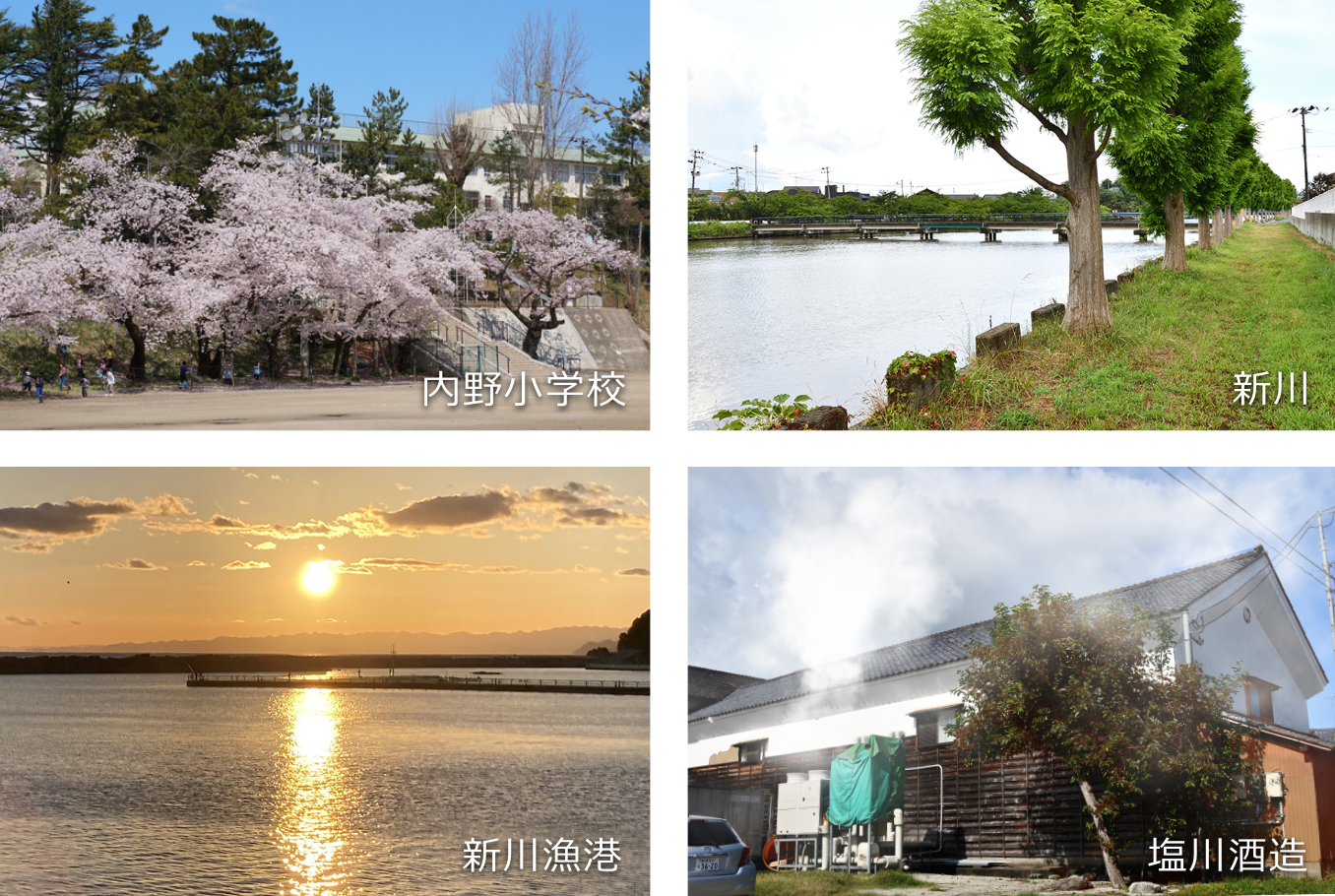 春は「内野小学校庭内の桜」、夏は「新川漁港の花火や夕日」、秋は「史跡や新川沿いの紅葉」、冬は「幻想的な湯気が立ち上がる酒蔵」など、一年を通じて身近な自然を楽しむことができます。