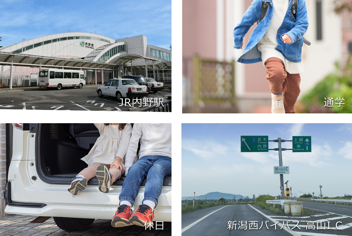 また、徒歩5分圏内に「JR内野駅」、車で5分圏内に「新潟西バイパス 高山I.C、西大通り」と、何処へ向かうにも快適なアクセスが可能です。